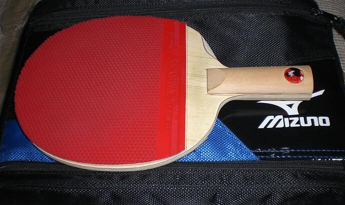 E esta das fotos abaixo, da última “fornada”, ficou um pouco mais dura que minha Persson de 7 folhas. Mas nesta madeira meu amigo comprou o compensado de 3 folhas pronto e colou mais 2 de cada lado. Para o cabo eu usei madeira hinoki de uma raquete jpen quebrada. Para compensar a dureza eu sempre opto por colar folhas de cortiça entre o cabo e a madeira.