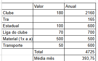 Estava me organizando para voltar a treinar e fui fazer as contas dos custos: