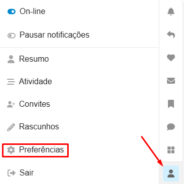 Caminho mais longo: clique no seu avatar no canto superior direito, depois no ícone de “Perfil”, após em “Preferências” e depois novamente em “Perfil” dentro do painel administrativo.